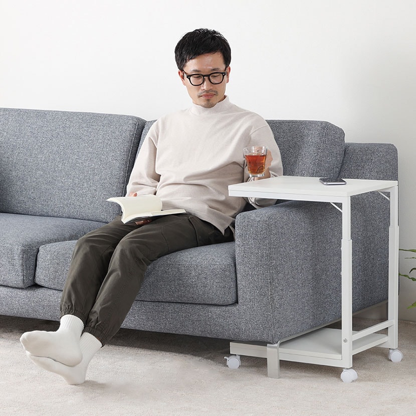 コの字型の為、ソファの脇にも収まります。