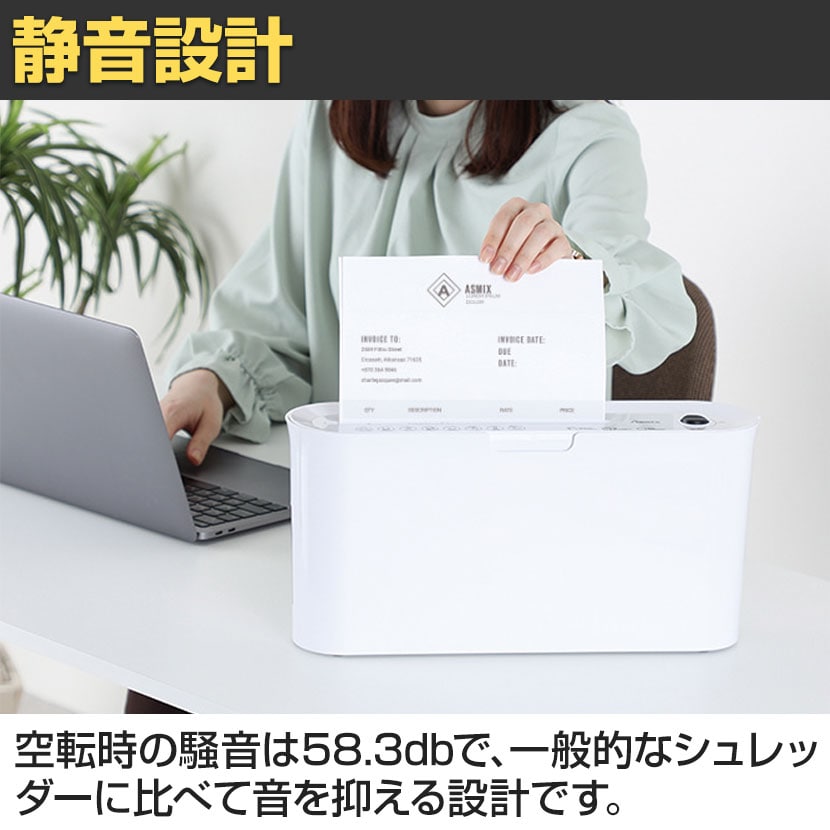 空転時騒音58.3dbで一般的なシュレッダーに比べ音を抑えます。