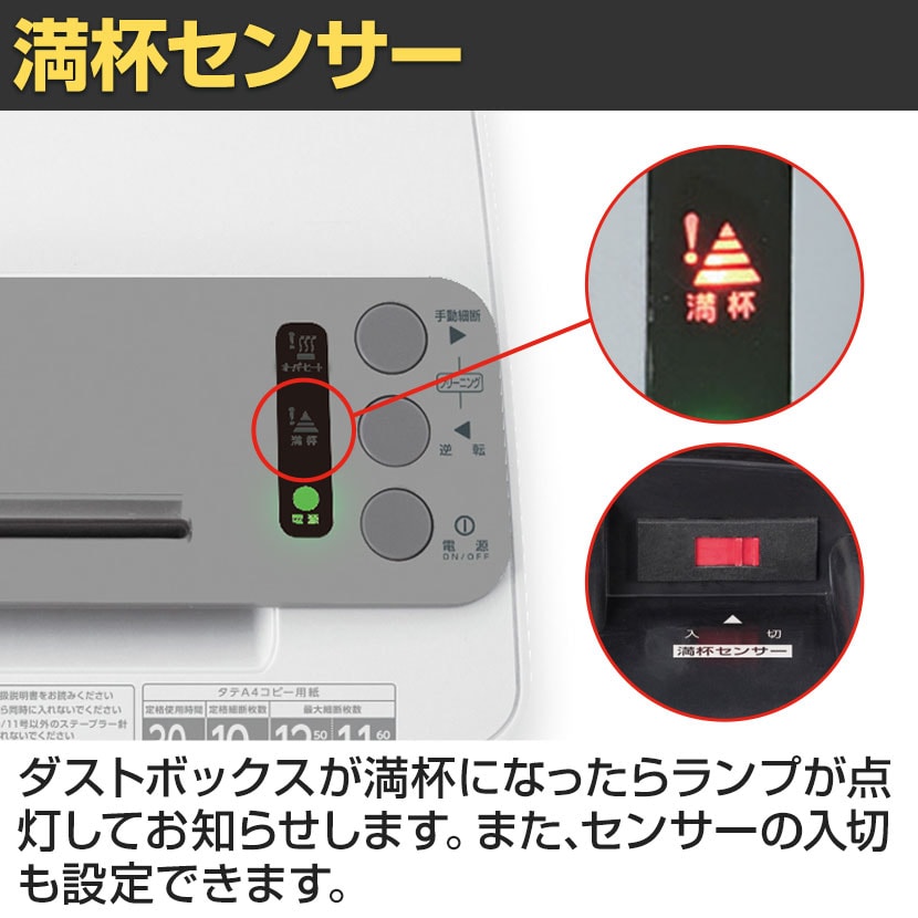 ・用紙細断屑満杯センサー付き