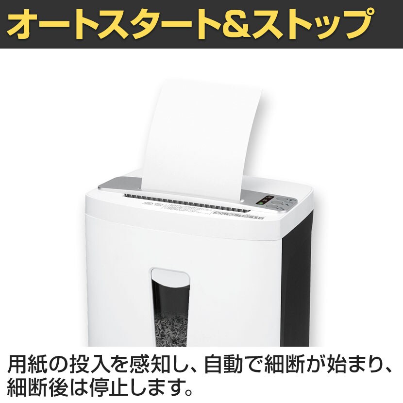 用紙の投入を感知し、自動で細断が始まり細断後は停止します。