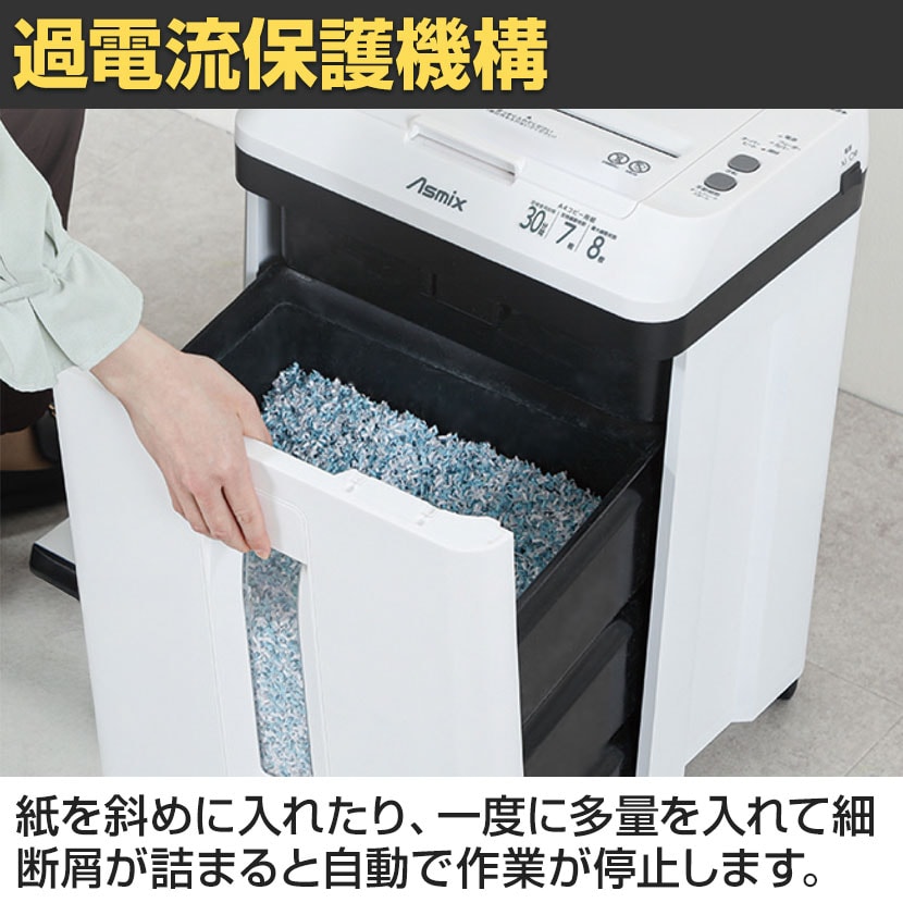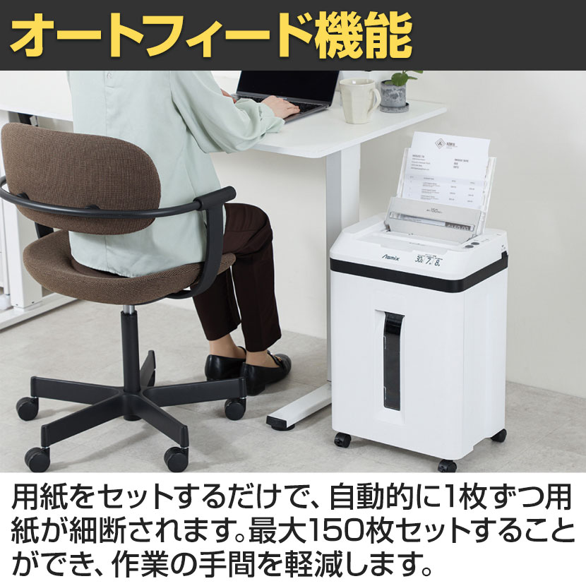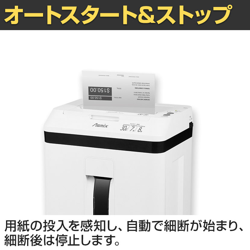 用紙の投入を感知し、自動で細断が始まり細断後は停止します。