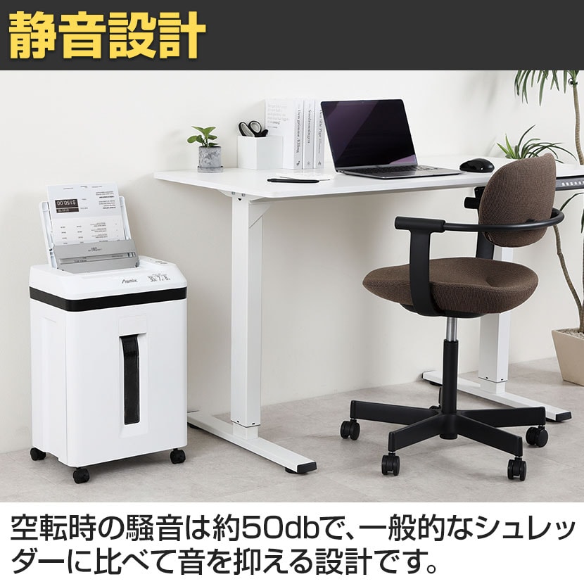 空転時騒音50dbで一般的なシュレッダーに比べ音を抑えます。