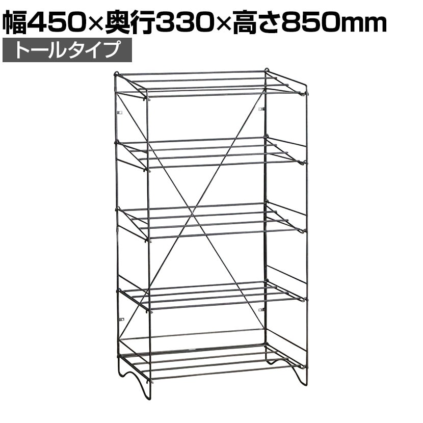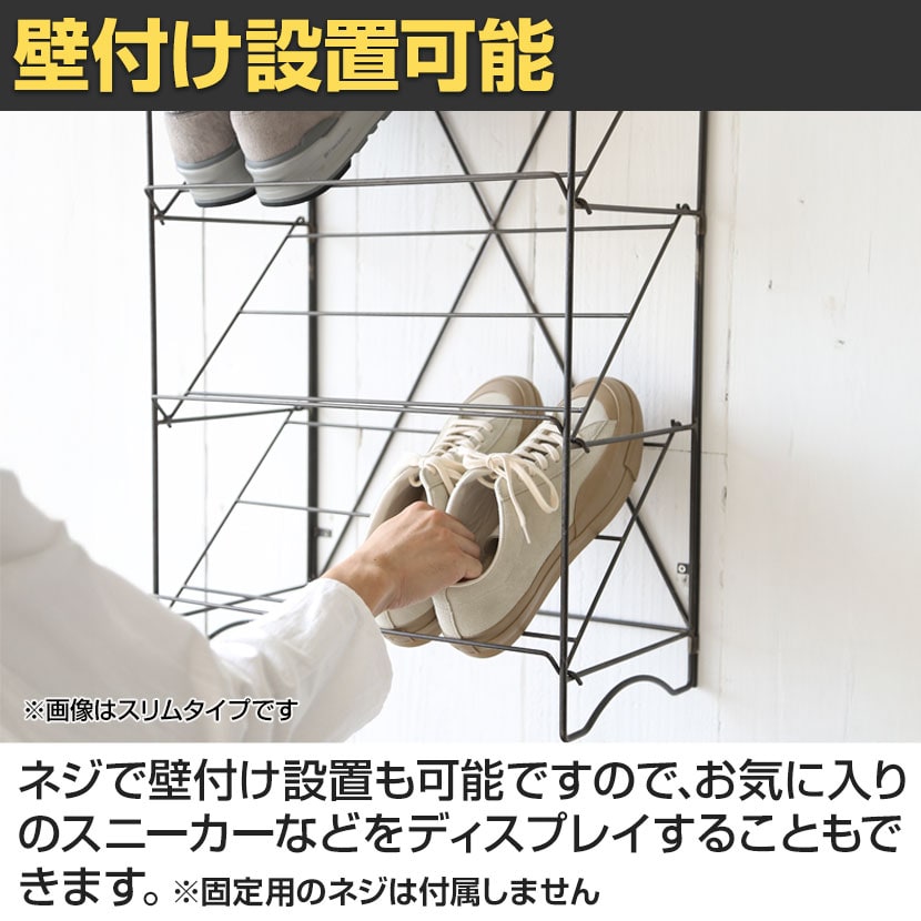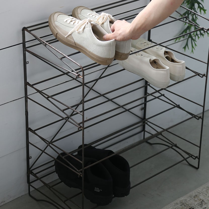 抜け感のあるシンプルなワイヤー製のシューズラックです。