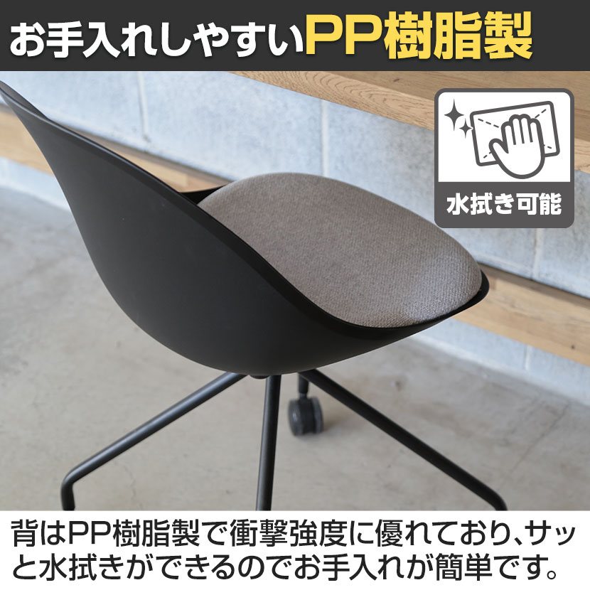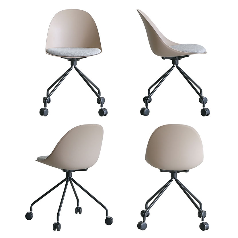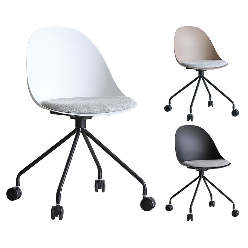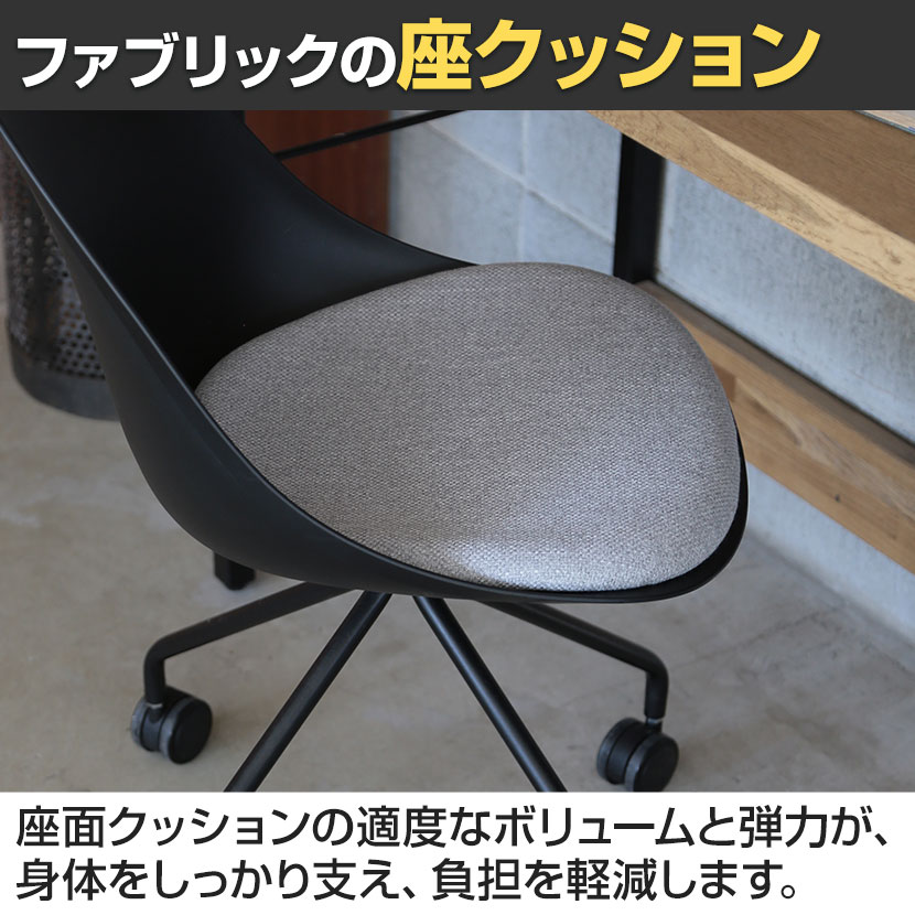 アイコニックなフォルムとシックでシンプルな落ち着いた色味のデスクチェアです。どのカラーバリエーションも空間に溶け込むような配色です。