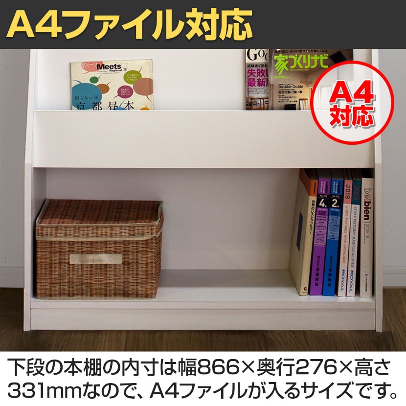 ・上段は表紙が見やすく、下段は本立てとして使用できるシンプルで機能的なデザインです。