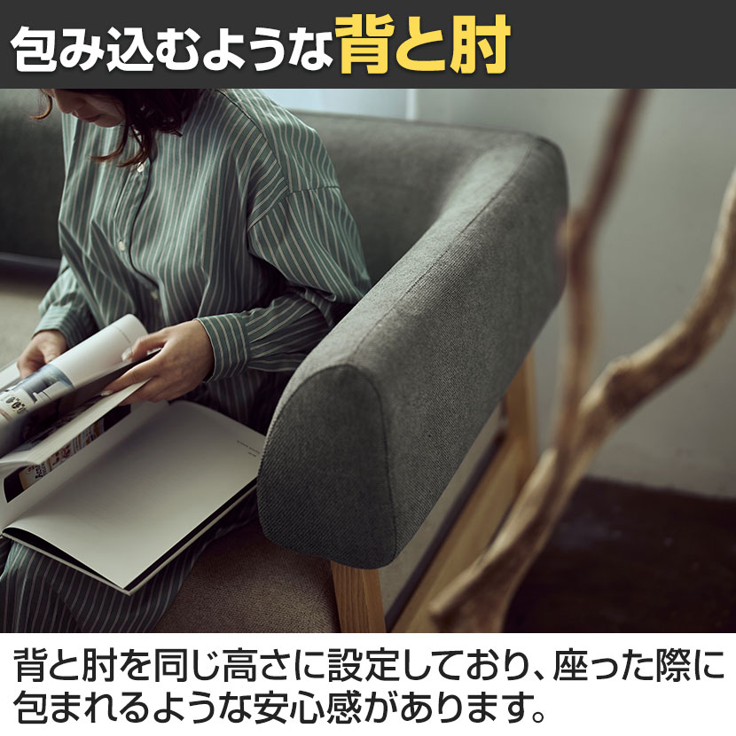 ・背と肘を同じ高さに設定していますので、座った際に包まれるような安心感があります。