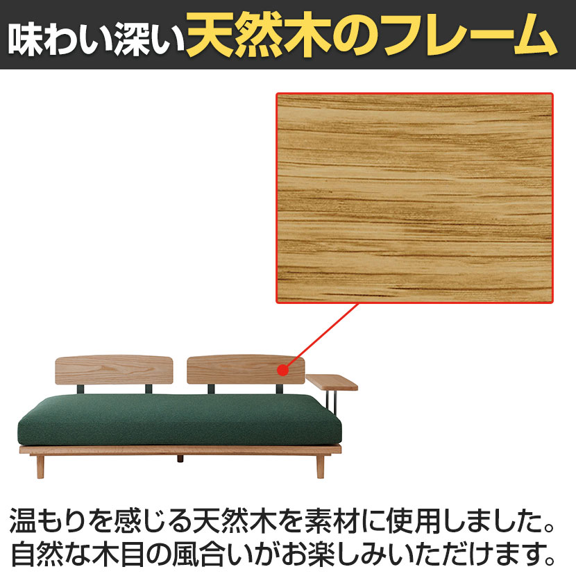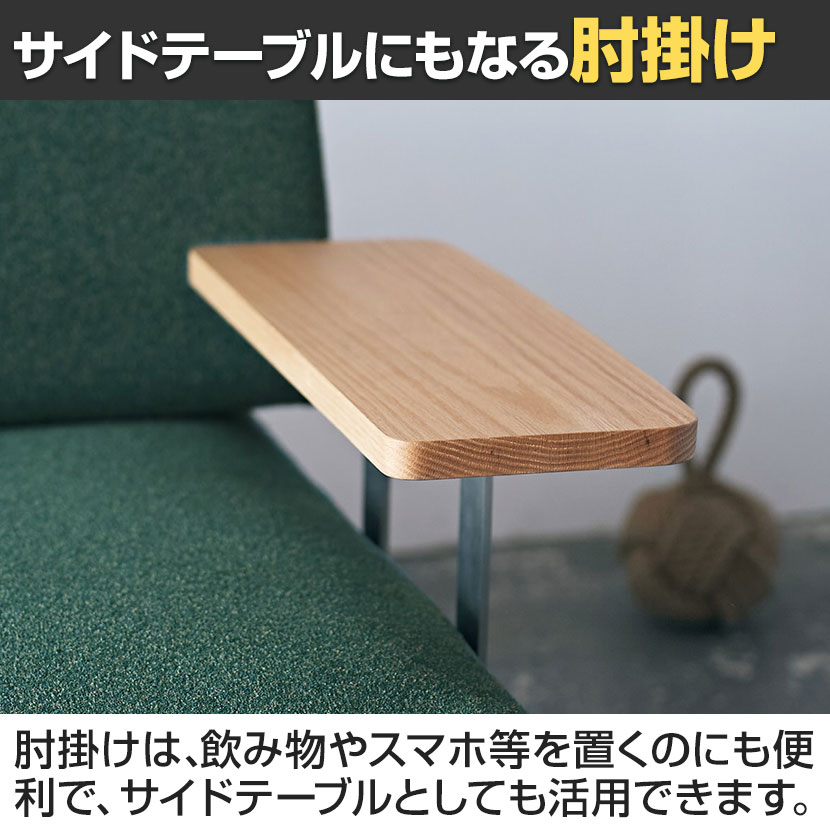 ・背や肘はステンレスとオーク無垢材を組み合わせたフレームとなっており、スタイリッシュな印象です。