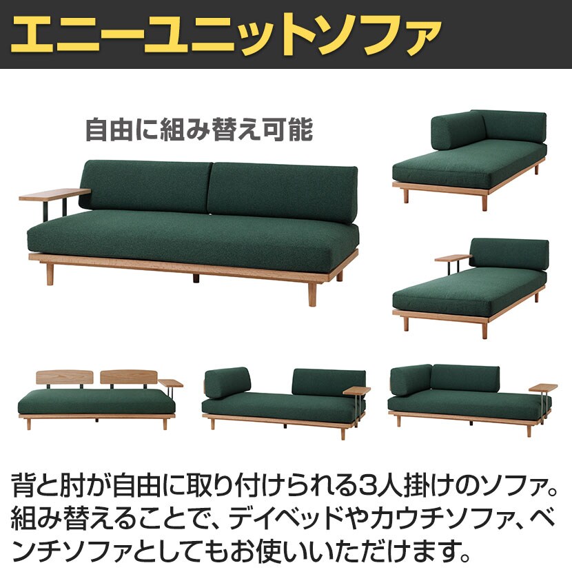 ・背と肘を組み替えることでアシンメトリーな配置やカウチタイプへの付け替えなども行えます。