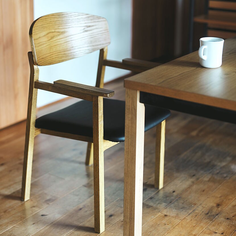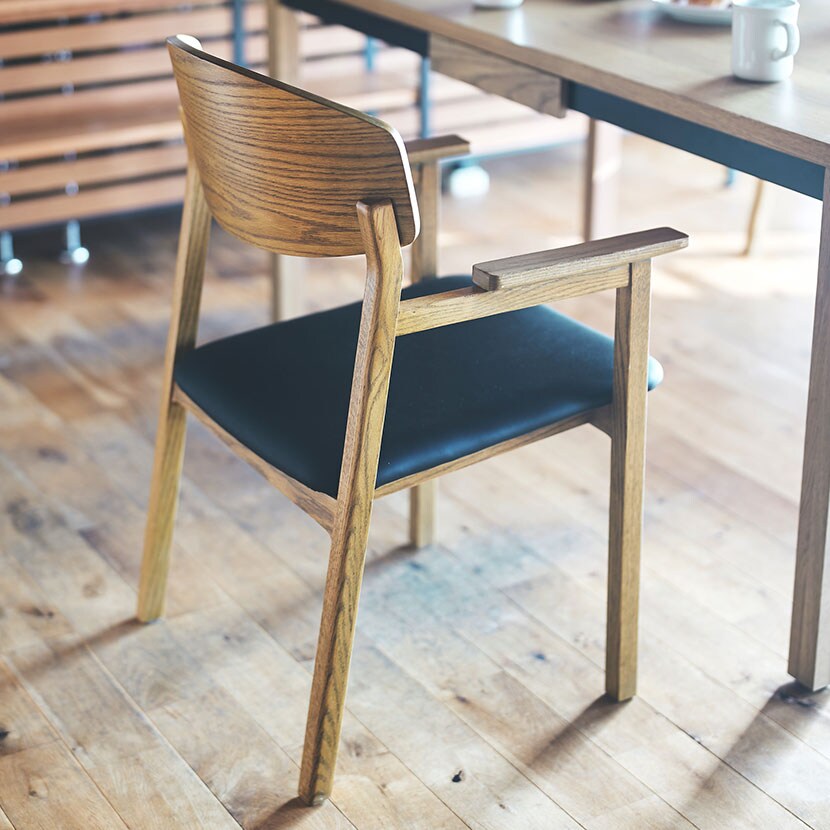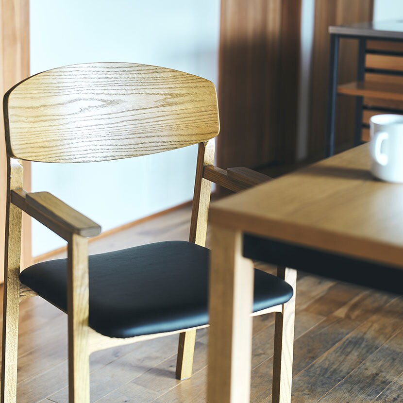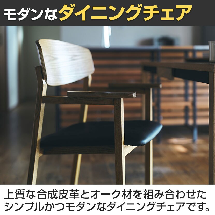 ・上質な合成皮革とオーク材を組み合わせたモダンなチェアです。