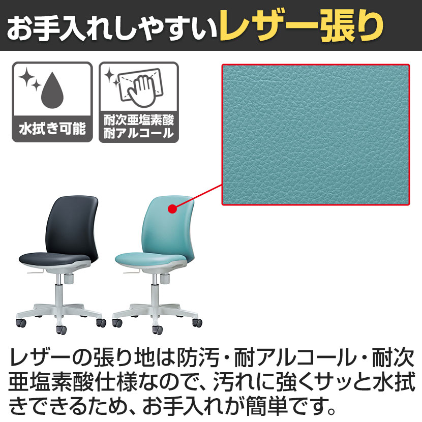 張材 / 布張り(ポリエステル)、レザー張り(防汚・耐アルコール・耐次亜塩素酸仕様)