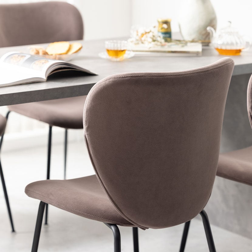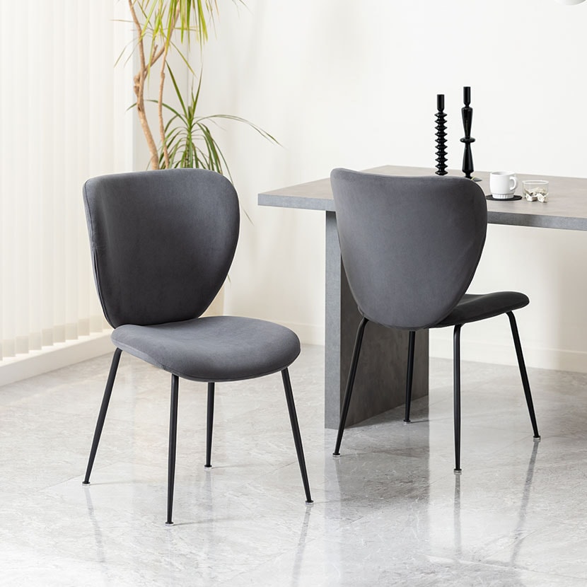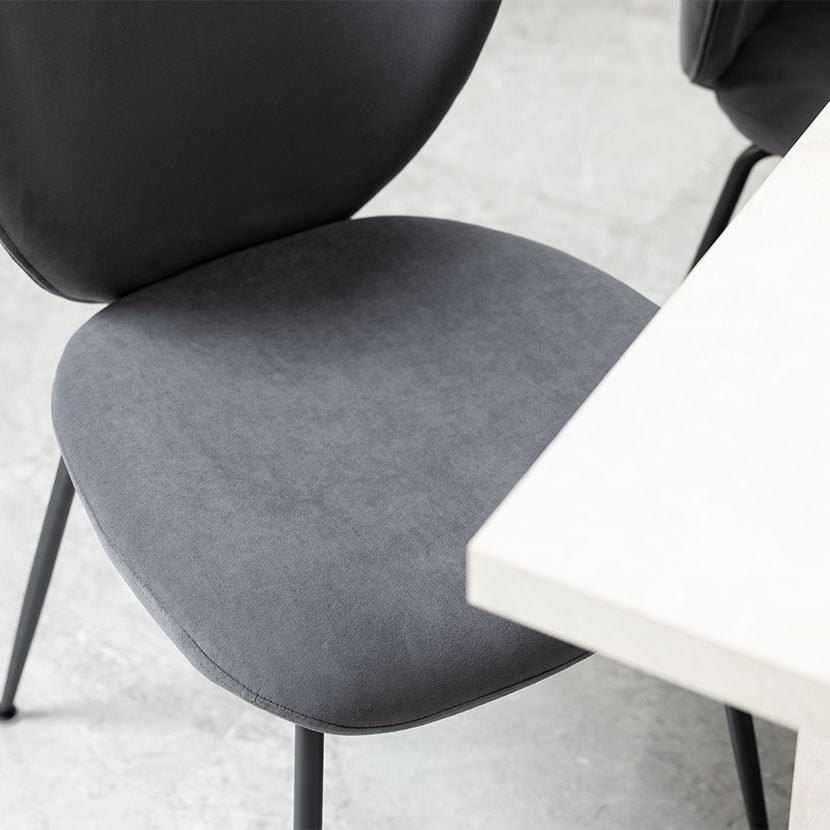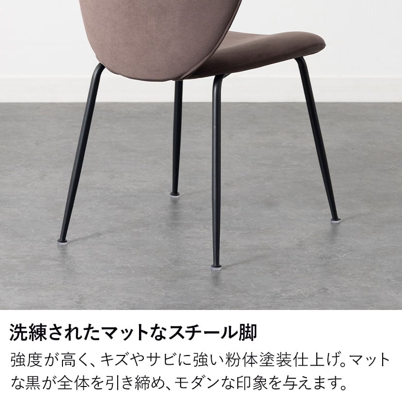 手触りの良いファブリックとマットなスチール脚の組み合わせが、モダンで落ち着いた空間を演出します。