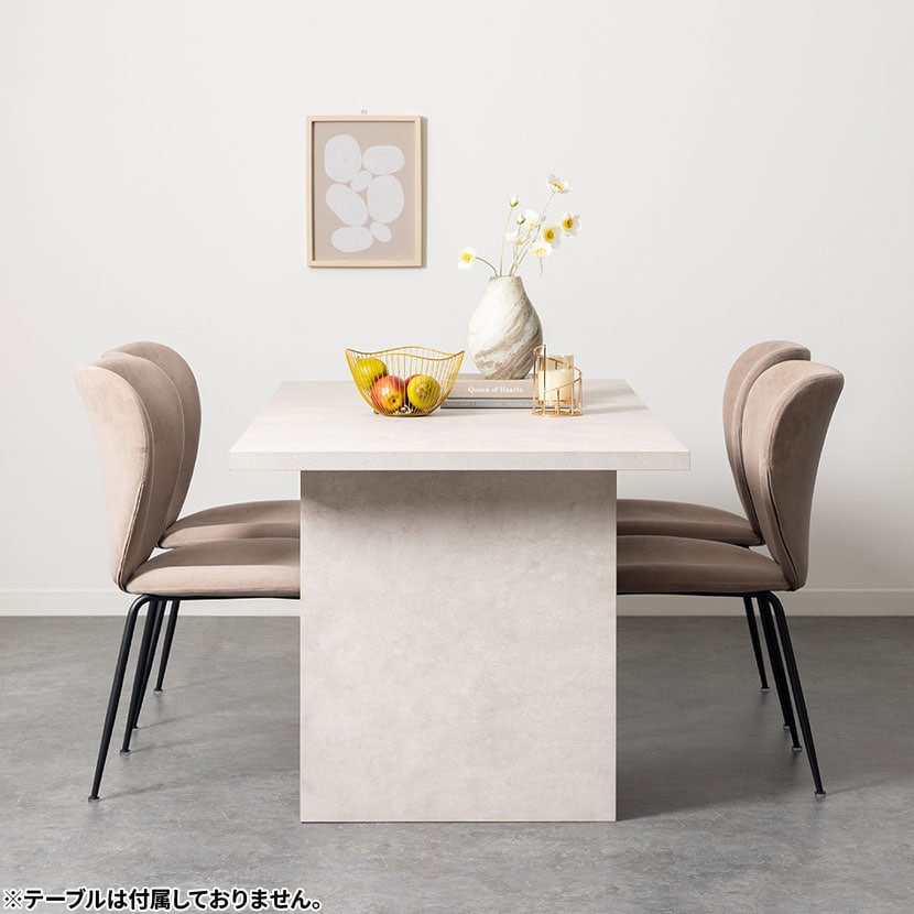 テーブルとセットで配置することで、素材感やデザインのバランスが整い、モデルルームのような洗練された空間が完成します。