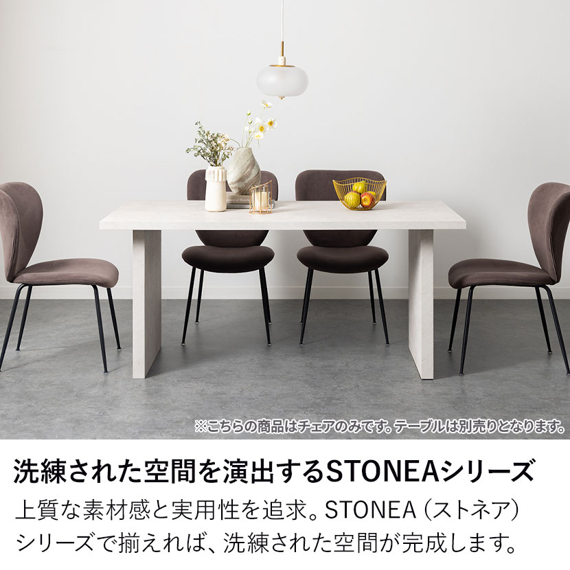シンプルで洗練されたデザインが魅力のSTONEAシリーズのダイニングチェア2脚セット。