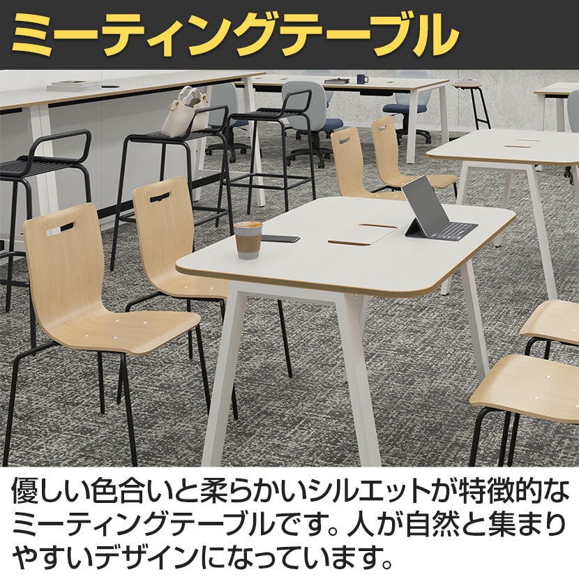 ・角丸の天板は着座や移動がスムーズで、人が集まりやすいデザインになっています。