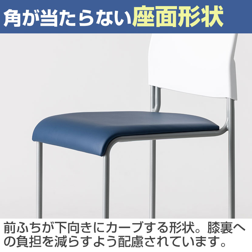 前ふちが下向きにカーブする形状。膝裏への負担を減らし、痛くなりにくいよう配慮されています。