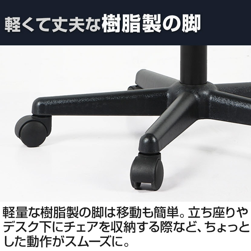 軽量な樹脂製の脚は移動も簡単。立ち座りやデスク下にチェアを収納する際など、ちょっとした動作がスムーズに。