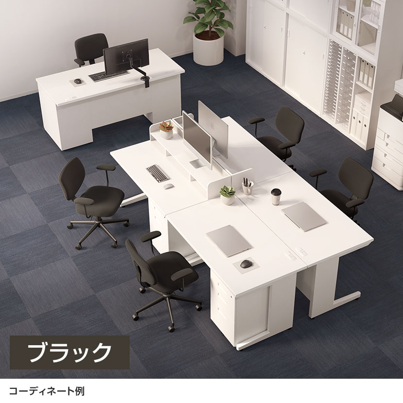 定番のブラックは、オーソドックスなオフィスにも自然に馴染みます。落ち着いたデザインが、集中力を高めるための執務空間を演出します。