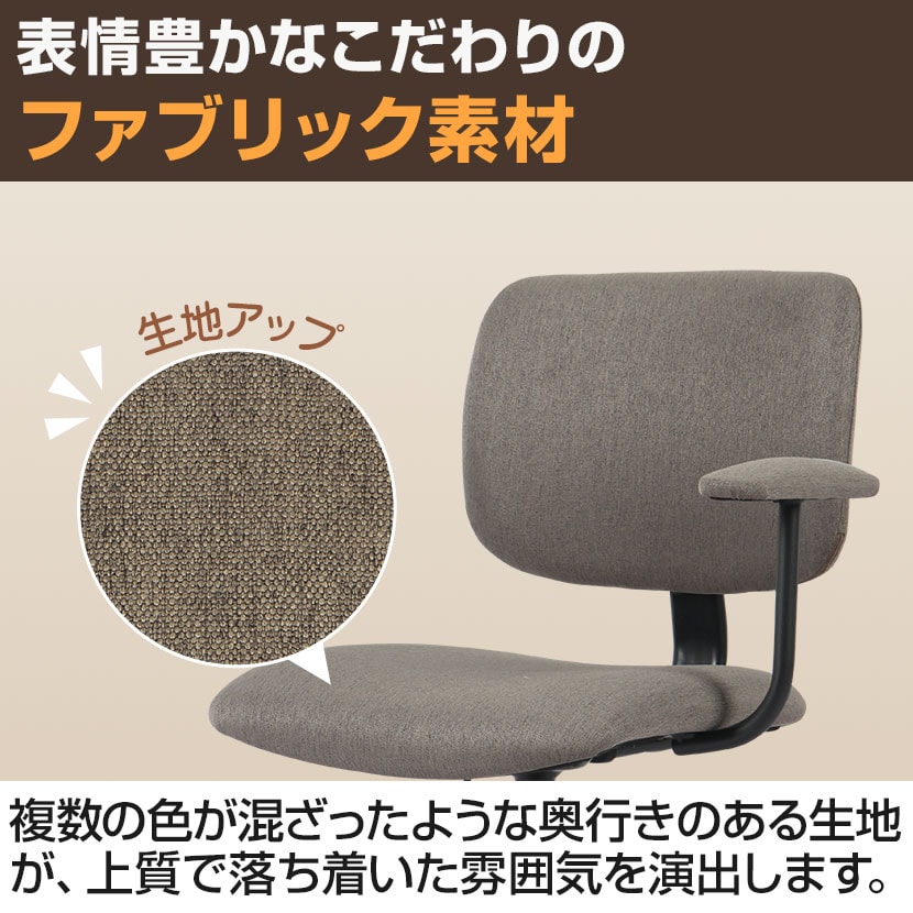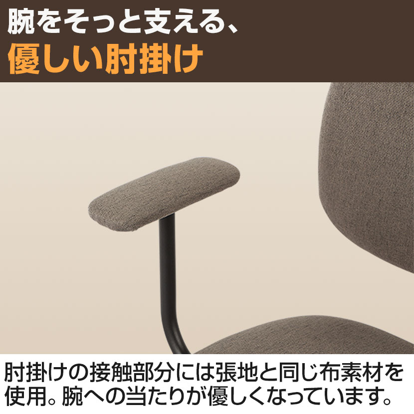 肘掛けの接触部分には張地と同じ布素材を使用。腕への当たりが優しくなっています。