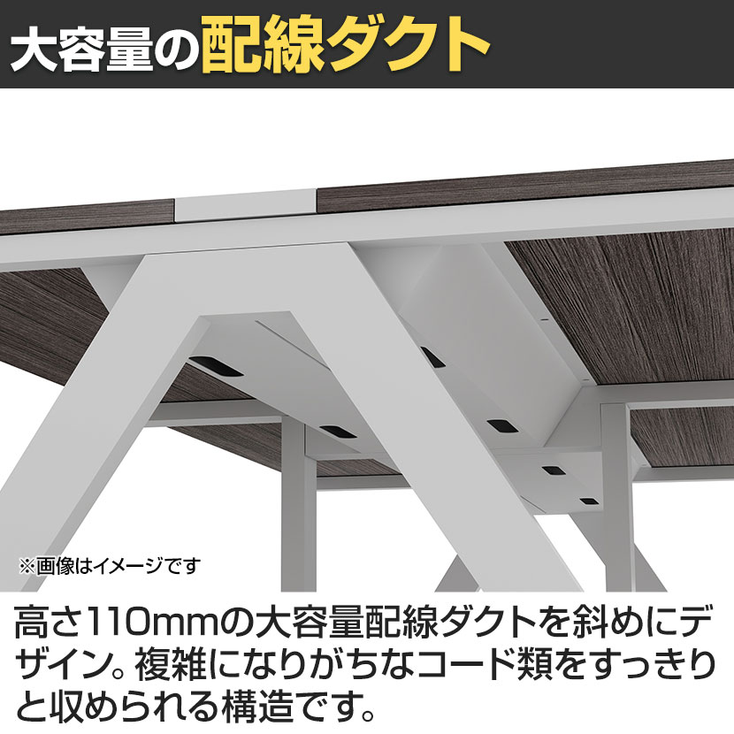 大容量の配線ダクトを装備し、クランプ式のモニターアーム等の取り付けも可能。