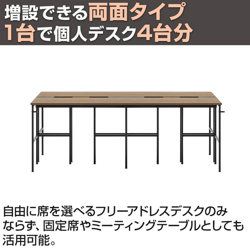 1台で個人デスク4台分。増設して自由なレイアウトを実現できる両面タイプ