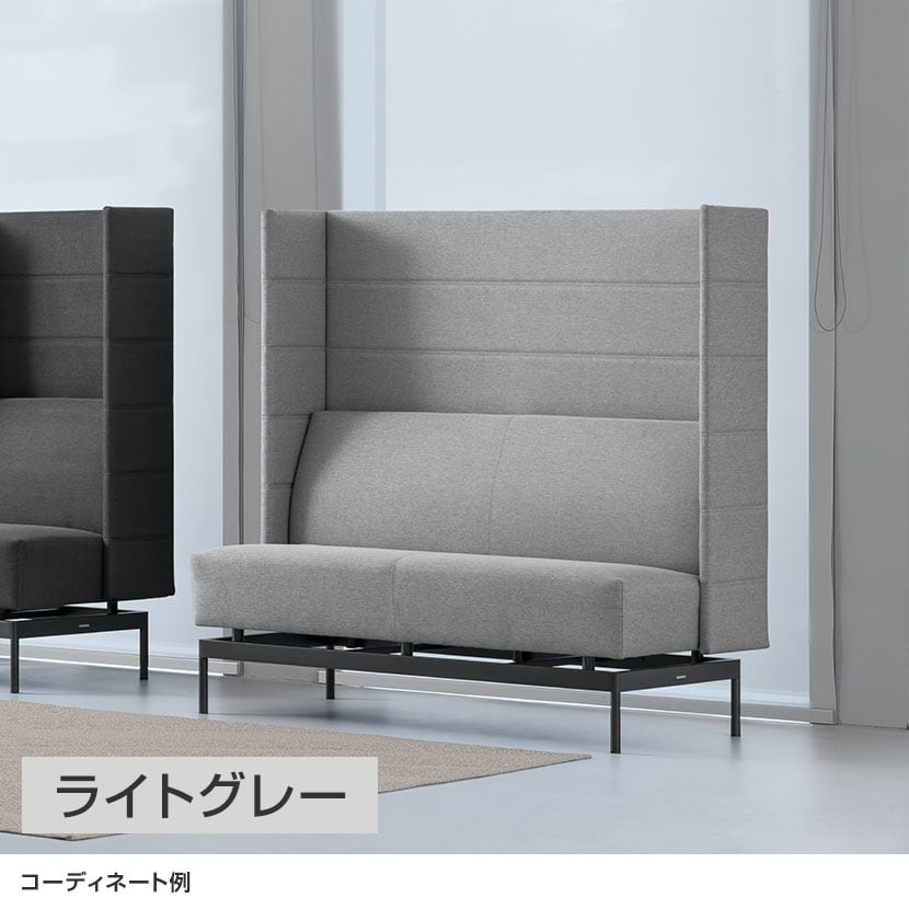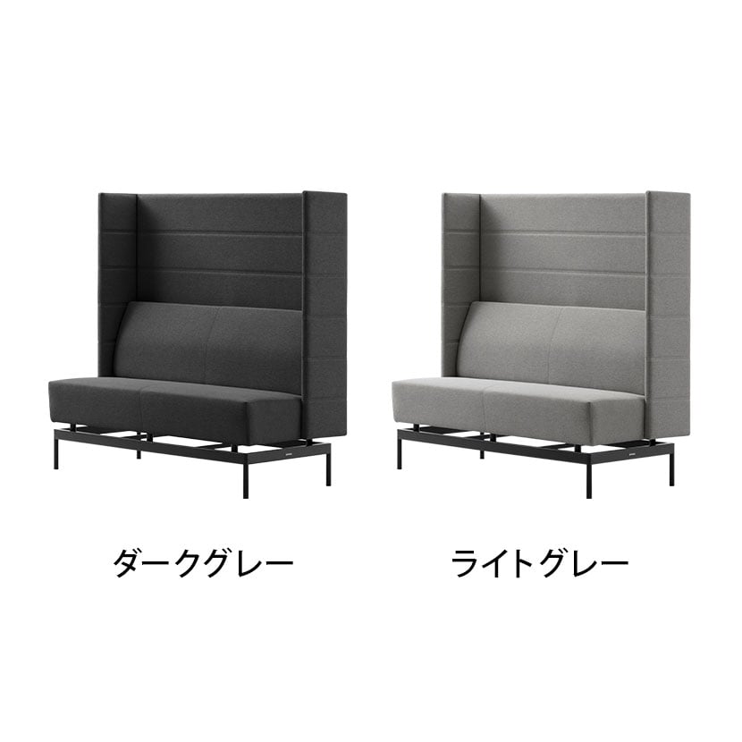 高さ1400mmのパネルが頭までしっかりと隠し、幅300mmのハーフサイドパネルが横の視界を程よく遮るため、周囲を気にせずゆったりと座れるソファです。脚部はフローティング設計で軽やかな印象に。マグネット付きOAタップを取り付けられるため、PC作業や充電環境にも適した実用性を備えています。