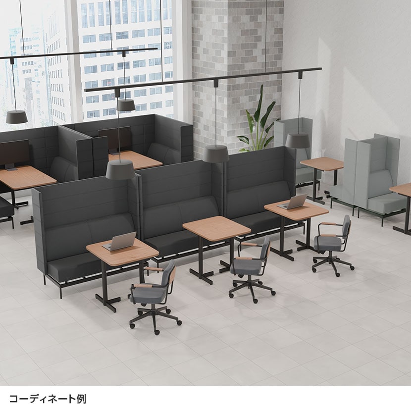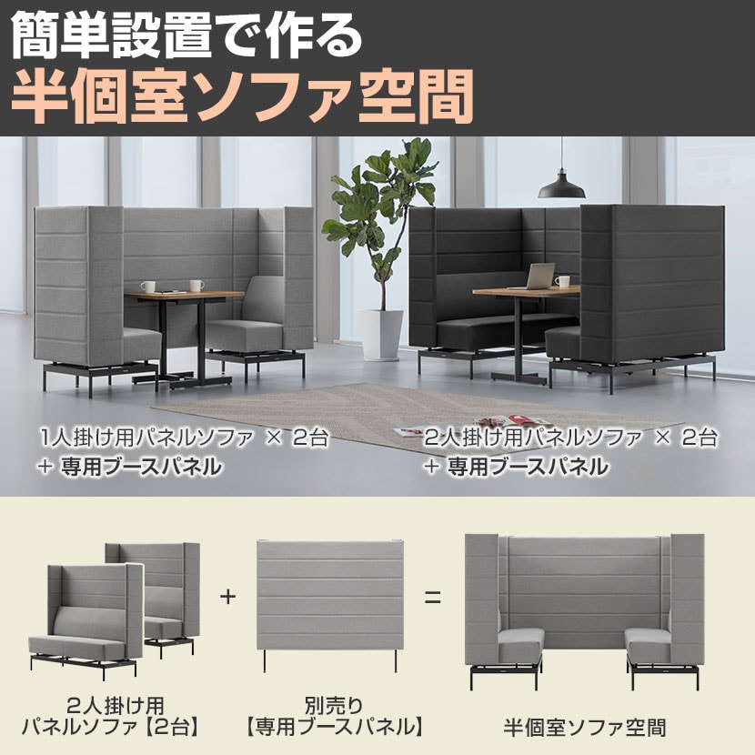 別売りの「パネル専用ブースパネル」をソファの間に設置すれば、半個室のプライベート空間を簡単に作れます。集中作業や商談、休憩など、周囲の視線を気にせず快適に過ごせる環境を手軽に演出できます。