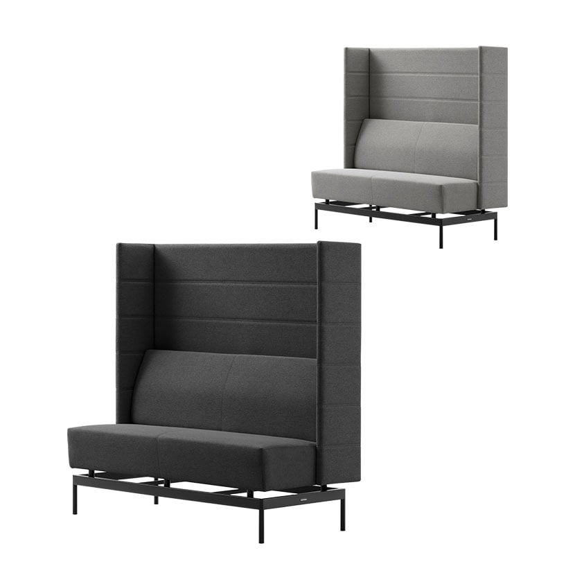 視線を遮ってプライベートな空間をつくる二人掛けパネルソファ。省スペースでコンパクトな集中空間を実現しながら、快適なくつろぎも叶えます。ファブリック素材のキルティングデザインに、上質感を添えるダブルステッチを採用。脚部はフローティング設計で軽やかな印象を与えつつ、マグネット付きOAタップの取り付けも可能です。PC作業や充電環境を整えられる実用性も備え、ファミレス商談や集中作業、休憩スペースまで幅広いシーンにフィットし、心地よいプライベート感を演出します。