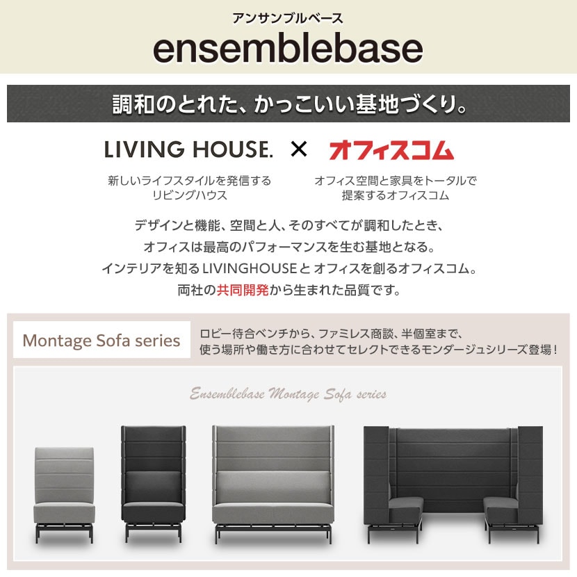 一人掛け・二人掛けのモンダージュソファのパネルタイプと組み合わせて設置できる専用ブースパネル。ソファの間を仕切ることで視線をしっかり遮り、省スペースでコンパクトな半個室空間を生み出します。ファミレス商談や集中作業はもちろん、休憩やリフレッシュの場としても活躍。ソファと同じ上質なファブリックデザインで統一感があり、オフィスやロビーに調和しながら、快適で落ち着いた半個室空間を演出します。