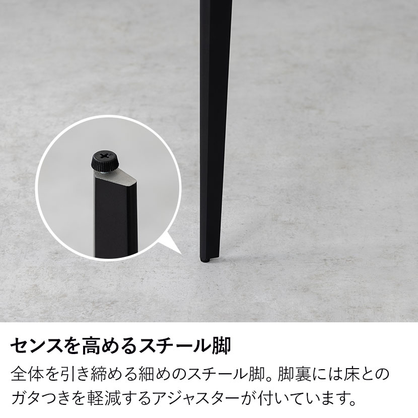 全体を引き締める、細めのスチール脚。圧迫感が少なくスタイリッシュな空間をつくりだします。