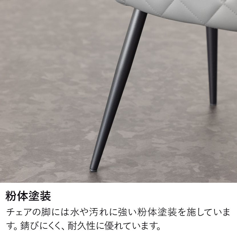 チェアの脚には水や汚れに強い粉体塗装を施しています。錆びにくく、耐久性に優れています。