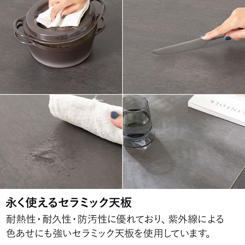 天板には1200℃で焼き上げた硬度の高いセラミックを採用。様々な特性を兼ね備えた高機能素材です。