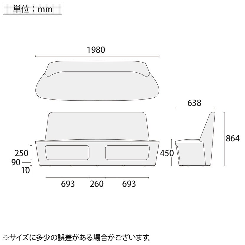 荷物置き(1個あたり) / 幅693×高さ250mm
