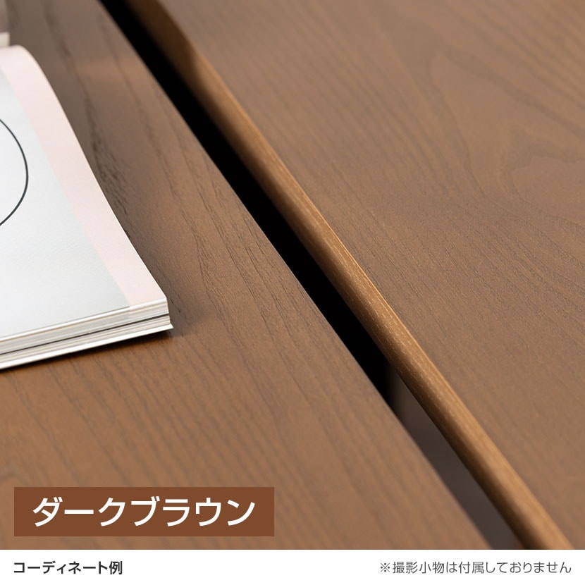 ナチュラルもダークブラウンも、アッシュ天板ならではの木目の美しさが引き立つ仕上げ。空間に自然な温もりと存在感を添えます。