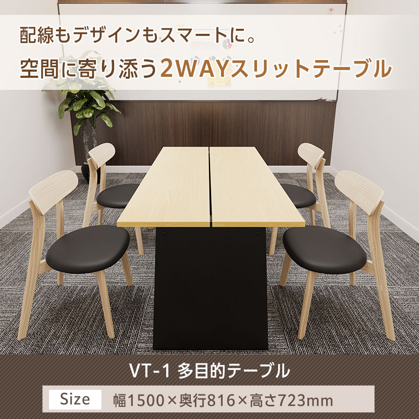 配線もデザインも両立。オフィス配線も家庭利用も可能な2WAYスリットデザインテーブル