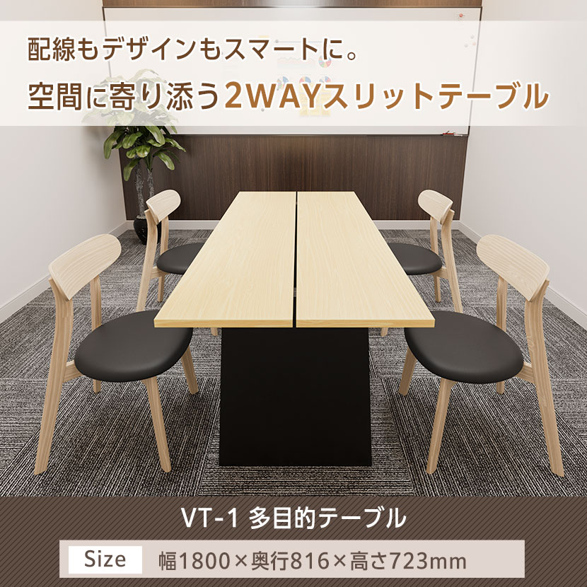配線もデザインも両立。オフィス配線も家庭利用も可能な2WAYスリットデザインテーブル