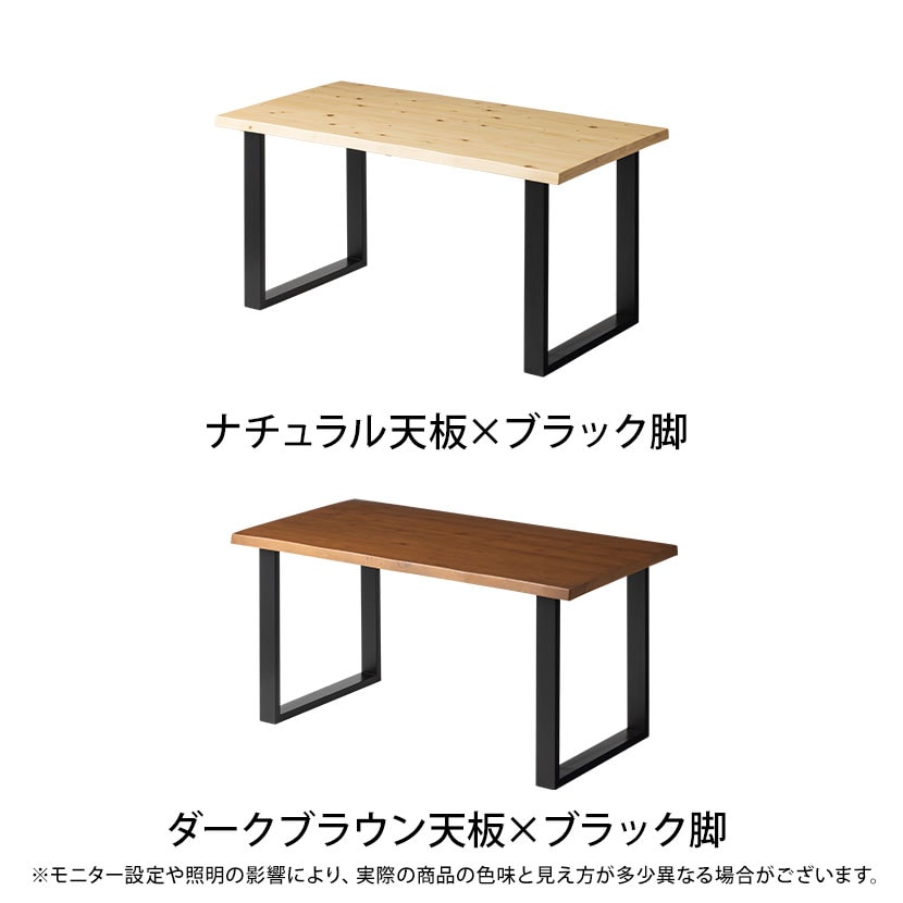 天然木パインを使用した無垢材です。節や黒い木目、色合いの違いは天然木ならではの個性です。加工上、節の状態によっては、一部あらかじめ補修を施しております。そのため、補修跡が見える場合や、材料のロットによる色の差が生じることがあります。これらは天然木の自然な風合いの一部であり、同じ表情のものは二つとありません。