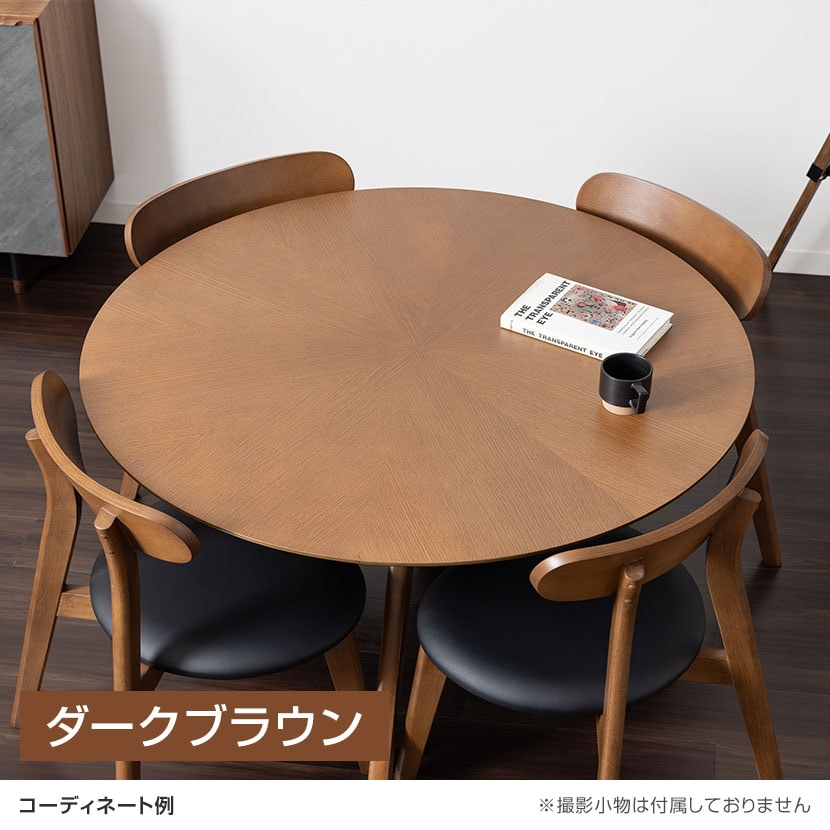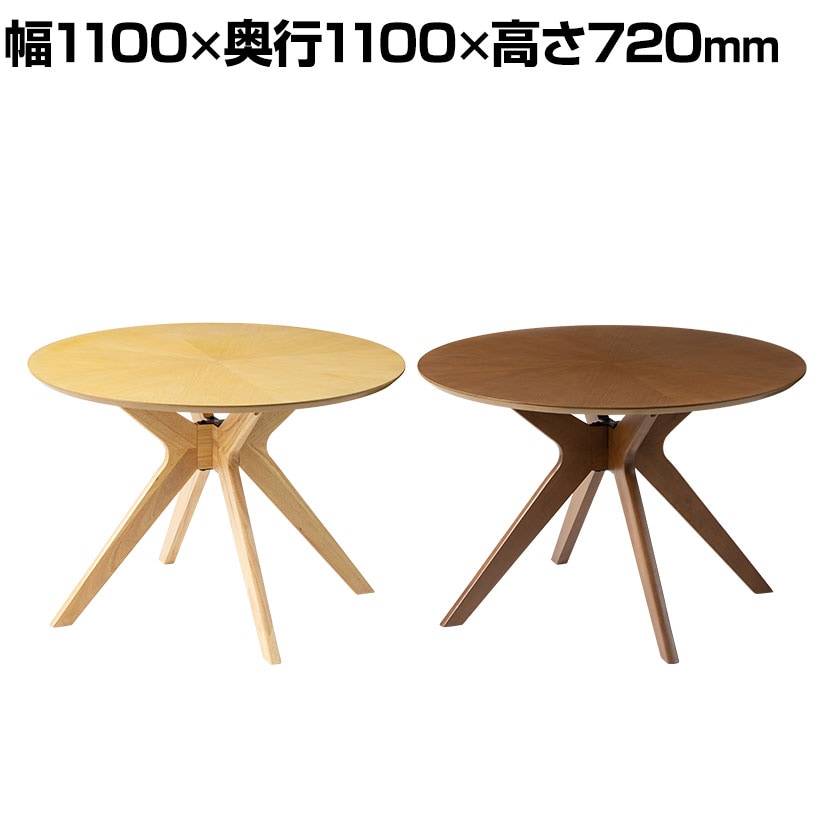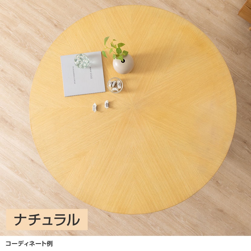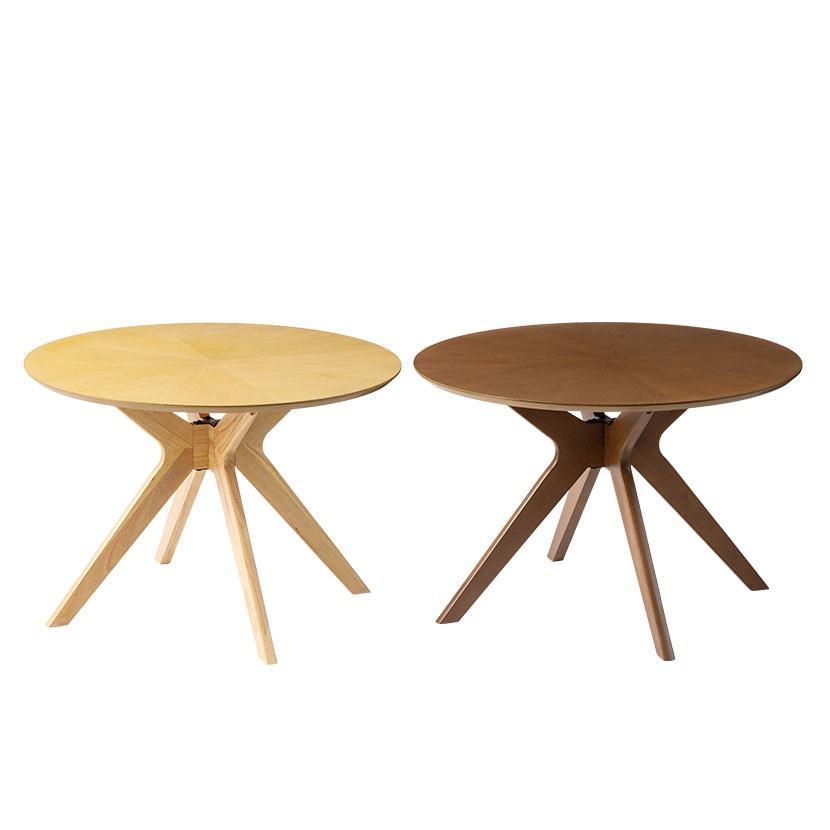 円形の天板の中央から放射状に広がる4本の脚は、視覚的にバランスがよく、安定感を感じさせる構造です。脚の配置は単なる支えではなく、空間に動きとリズムを生み、ラウンド天板の柔らかな印象と組み合わさることで、シンプルながらも洗練されたデザインを実現しています。