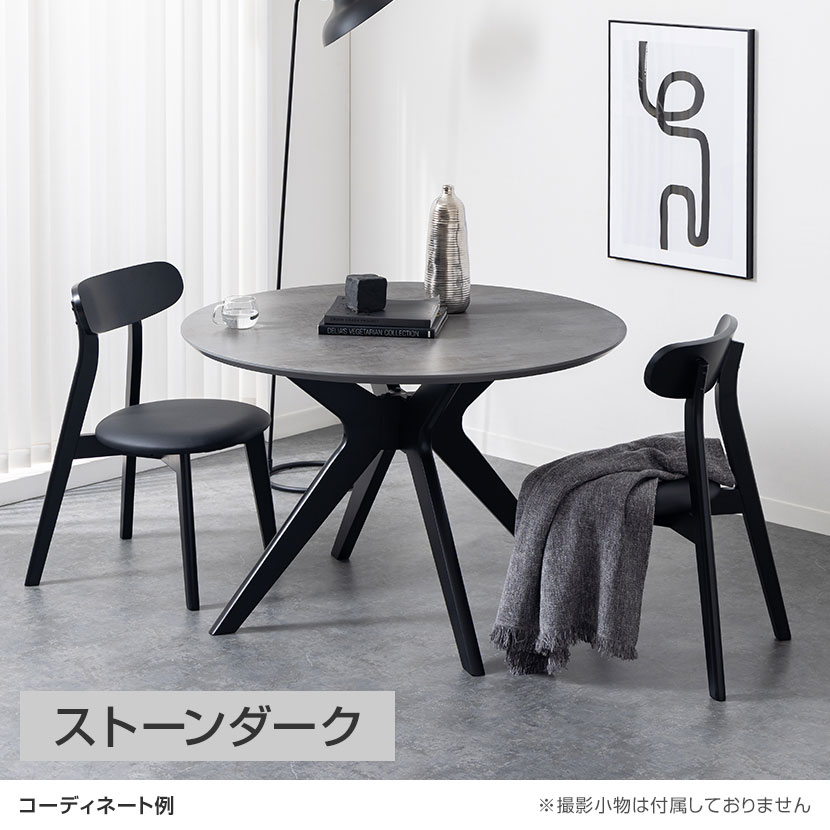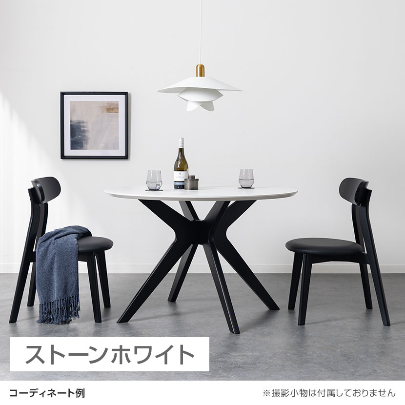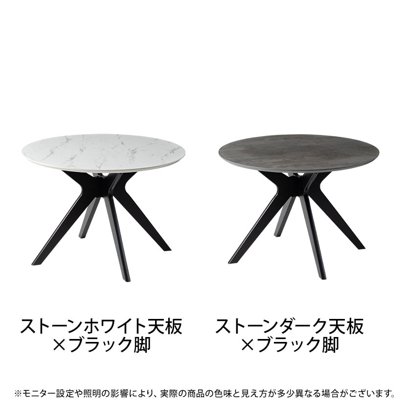 円形の天板の中央から放射状に広がる4本の脚は、視覚的にバランスがよく、安定感を感じさせる構造です。脚の配置は単なる支えではなく、空間に動きとリズムを生み、ラウンド天板の柔らかな印象と組み合わさることで、シンプルながらも洗練されたデザインを実現しています。