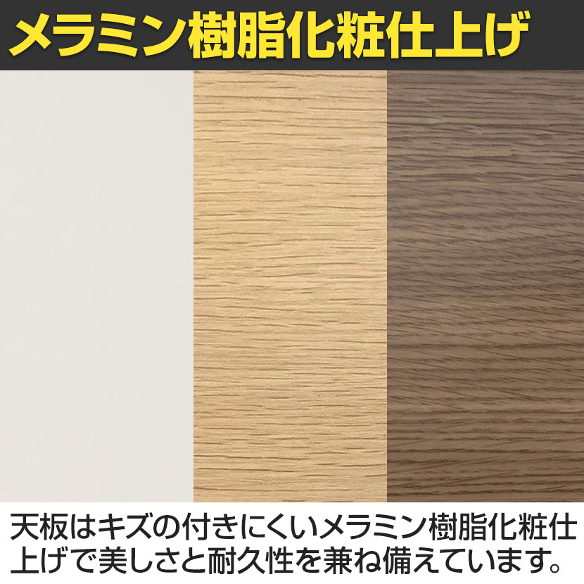 ・丈夫なフレーム構造でオフィスでの長期使用にも安心です。天板はキズの付きにくいメラミン樹脂化粧仕上げで美しさと耐久性を両立しています。