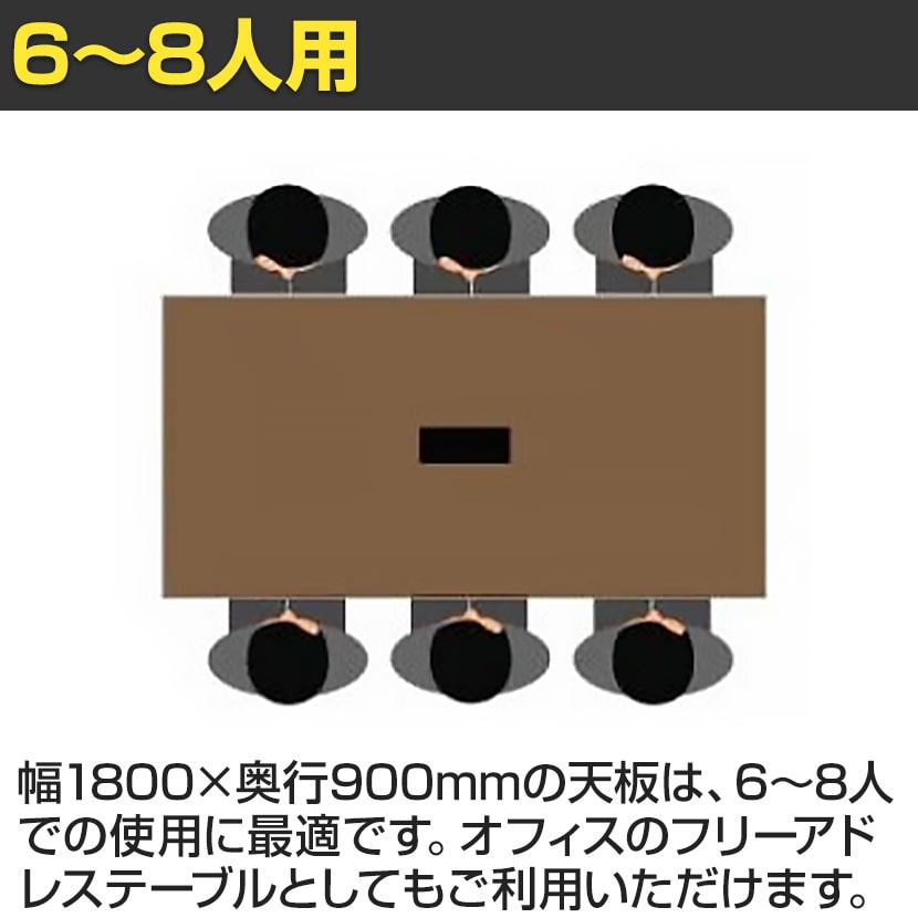 ・6~8人用のミーティングテーブルにおすすめ。小規模オフィスのフリーアドレステーブルとしてもご利用いただけます。