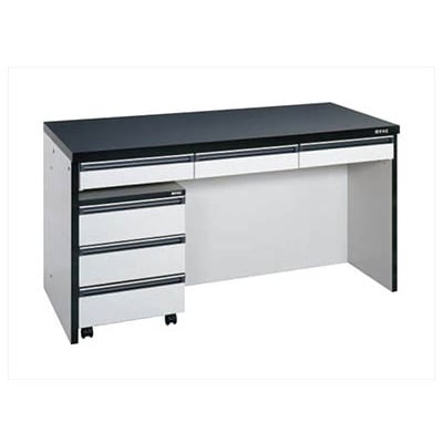 薬品に強いトレスパ天板を採用した木製作業台引出しやキャビネットワゴン・架台を用途によって追加することができます
