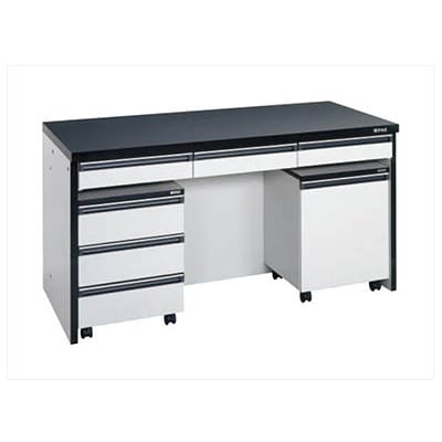 薬品に強いトレスパ天板を採用した木製作業台引出しやキャビネットワゴン・架台を用途によって追加することができます