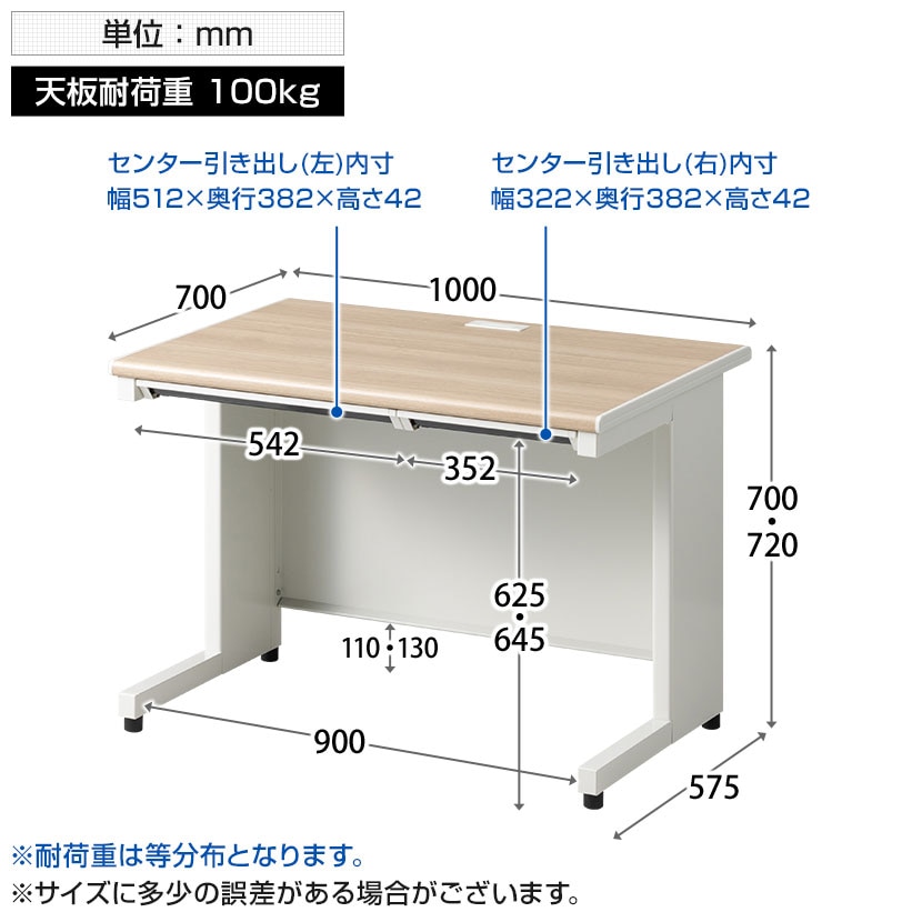 耐荷重100kgの堅牢スチール天板