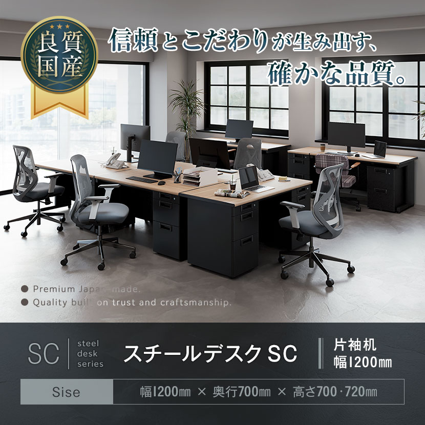 デザインと堅牢性を両立。空間を引き立てる国産スチールデスク/片袖机幅1200mm