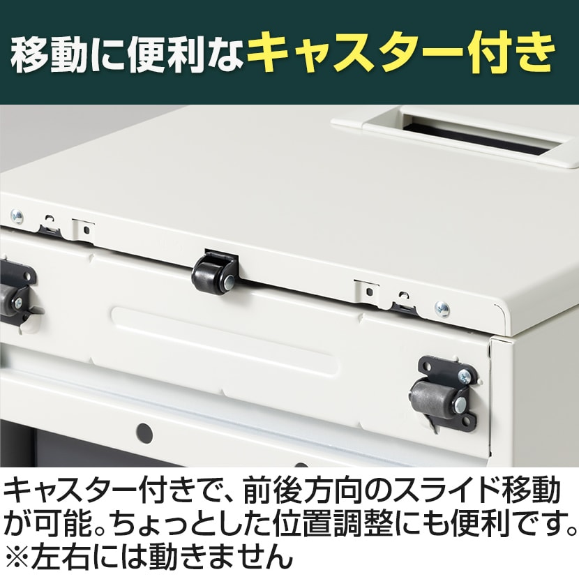 キャスター付きで、前後方向のスライド移動が可能。ちょっとした位置調整にも便利です。※左右には動きません