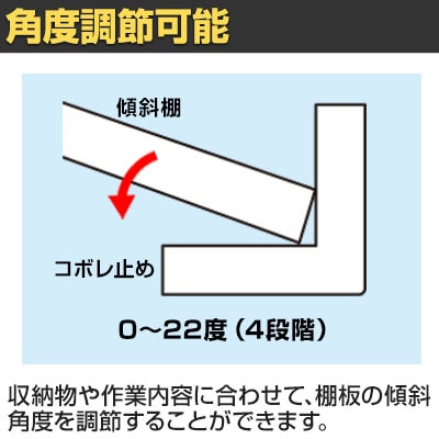 ●コボレ止め付きの傾斜棚タイプでピッキング作業に適しています