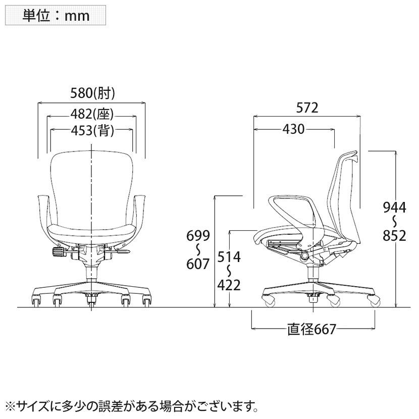 座面高さ / 422~514mm