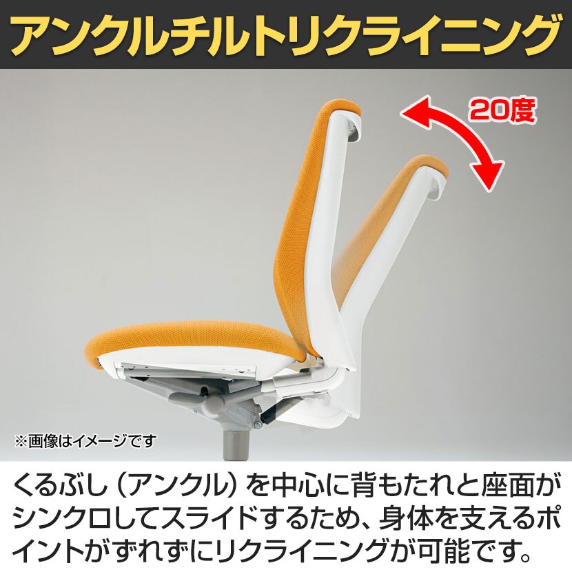 くるぶしの動きを中心として背と座がシンクロしてスライドします。