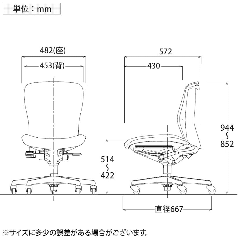 座面高さ / 422~514mm