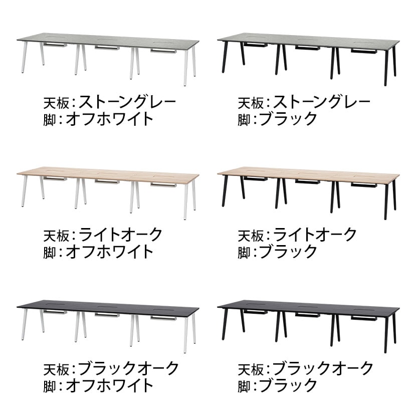 フリーアドレスデスクとミーティングテーブルをシリーズでラインアップ。フリーアドレスデスクは、幅1000mmと幅1200mmの2サイズ展開。共通設計の脚部により、それぞれを自由に増連できるため、「基本は幅1200mmで構成し、一部セクションのみ幅1000mmを連結する」といった変則的なレイアウトにも柔軟に対応します。天板中央には特許取得の「3WAY配線ホール」を搭載。機能性とデザイン性を両立し、快適なオフィス環境を実現します。